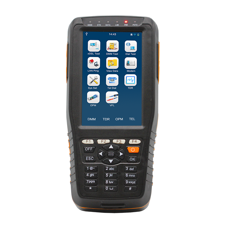 Tester VDSL X-5008 appositamente progettato per test su linea scorrevole (xDSL include: ADSL, ADSL2, ADSL2 +, READSL, VDSL2 ecc.) E manutenzione Fornisce test xDSL, test dial PPPoE, test DMM, emulazione modem, indicazione della tensione di linea e così via. X-5008 VDSL Tester introduce anche il misuratore di potenza ottica e la funzione di localizzazione visiva dei guasti nell'unità, nonché la funzione TDR. È un tester multifunzione con dimensioni intelligenti, display LCD a colori reali e potente software di gestione, batteria ricaricabile da 6600 mAh, ecc.